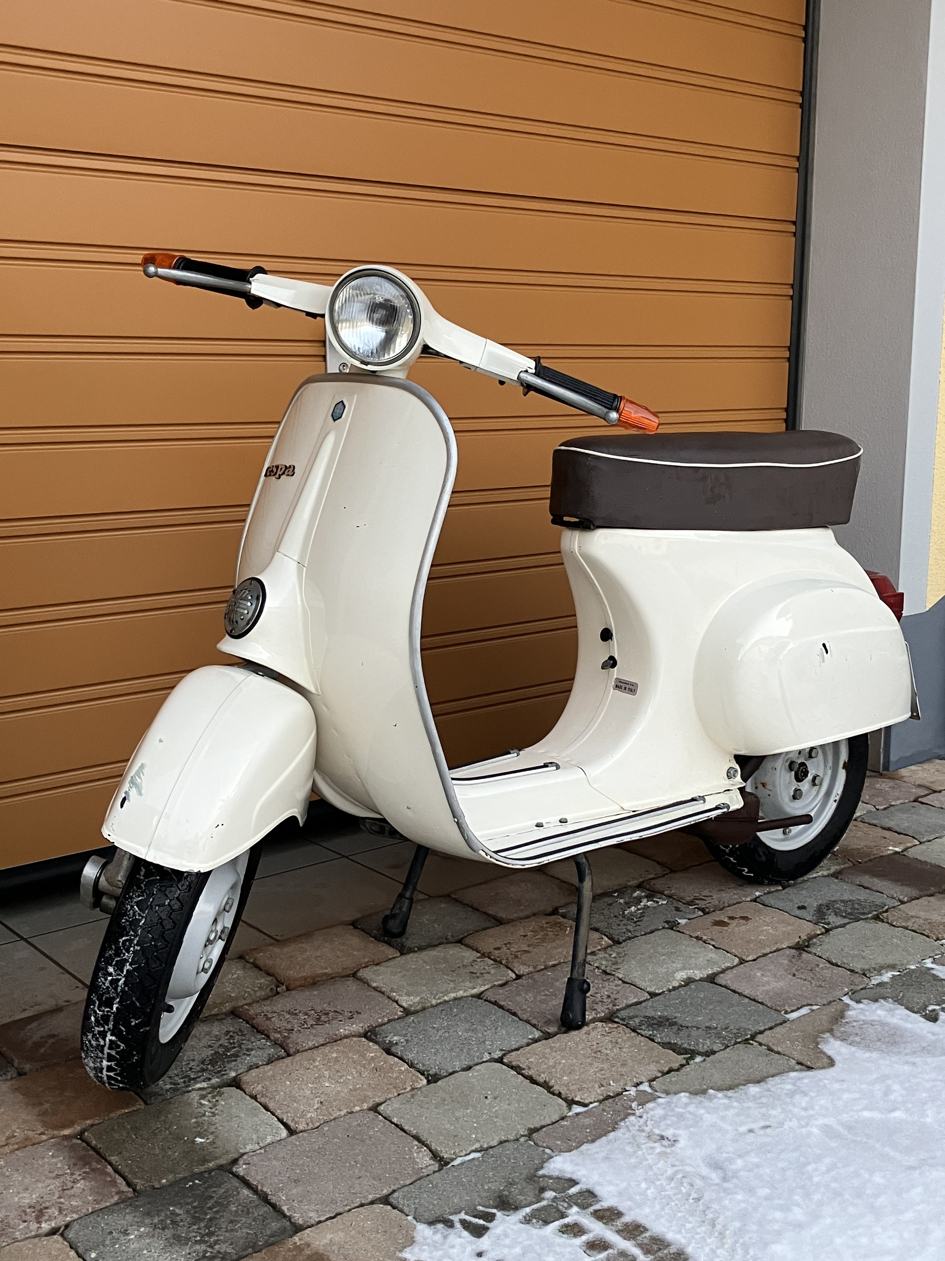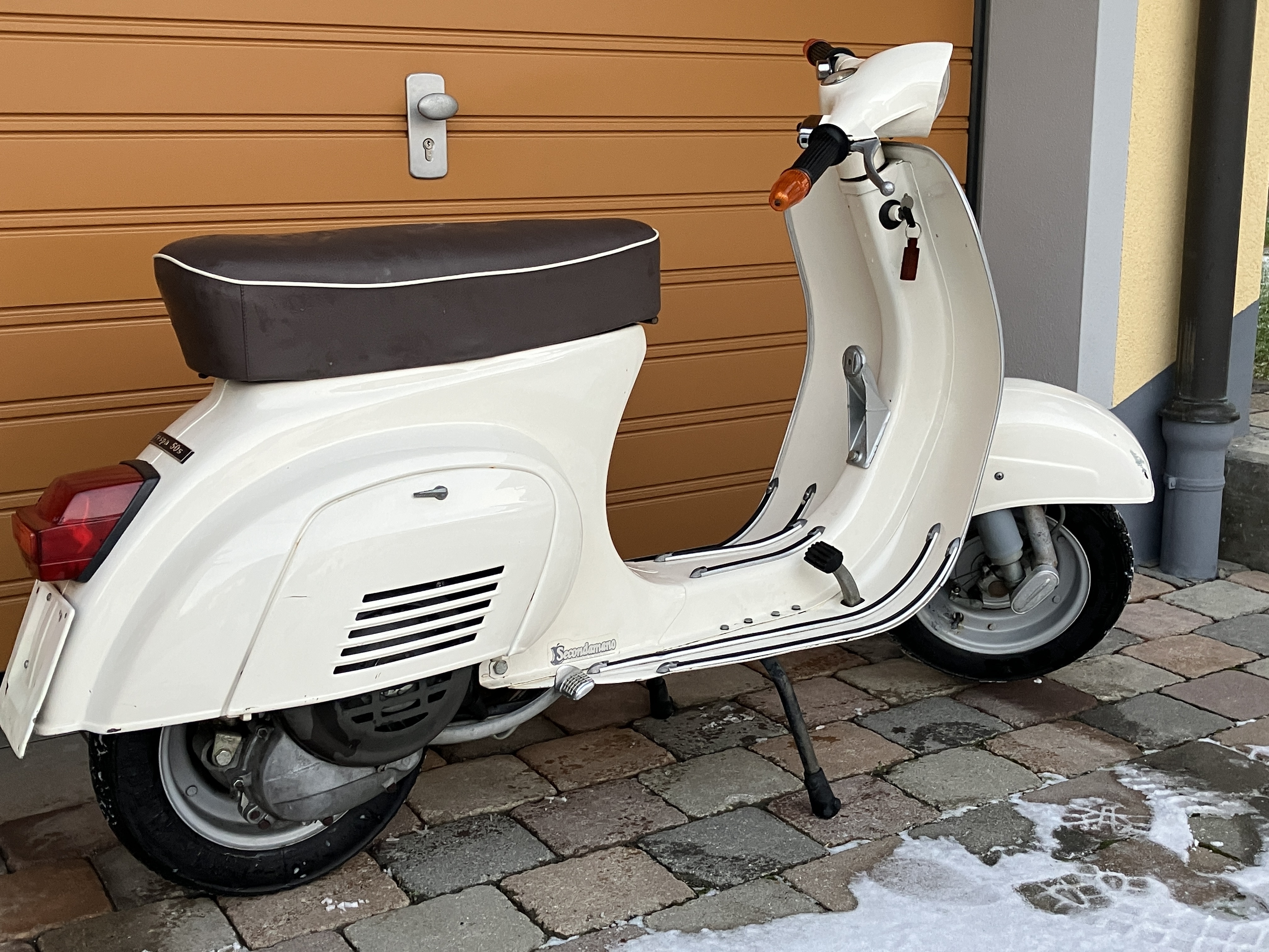 Bin zum Baumarkt gefahren und wurde beim Parken von einer älteren Dame auf die Vespa angesprochen. Ihr ist aufgefallen, dass ich den Roller sehr verliebt anschaue und er ja auch schön glänzt. Ich habe dann nur gesagt, dass ich natürlich in die Vespa verschossen bin und sie lange auf die erste Fahrt des Jahres gewartet hat.