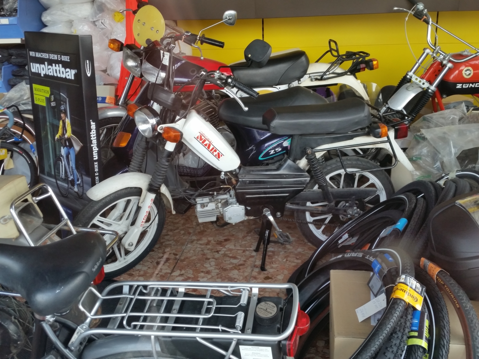 Sie ging zum 20 km entfernten Piaggio-Hercules-(Kreidler-Victoria)-Händler. Also fast sowas wie moped-garage.de nur in echt.