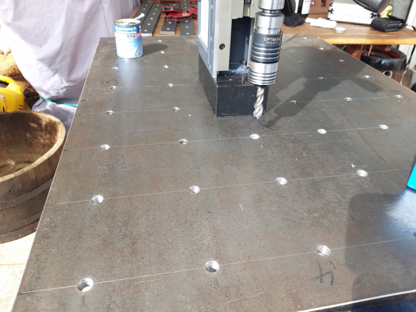 Komisches Hobby, Gewinde in Stahlplatten schneiden.... 😉
