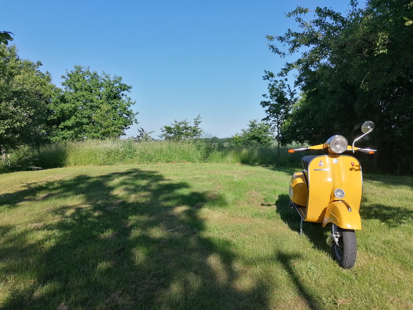 Freue mich heute über Vespa Motorbraten. Überall dieser Geruch einer Mischung aus SAE30 Getriebeöl, Bremsenreiniger und Gemisch...