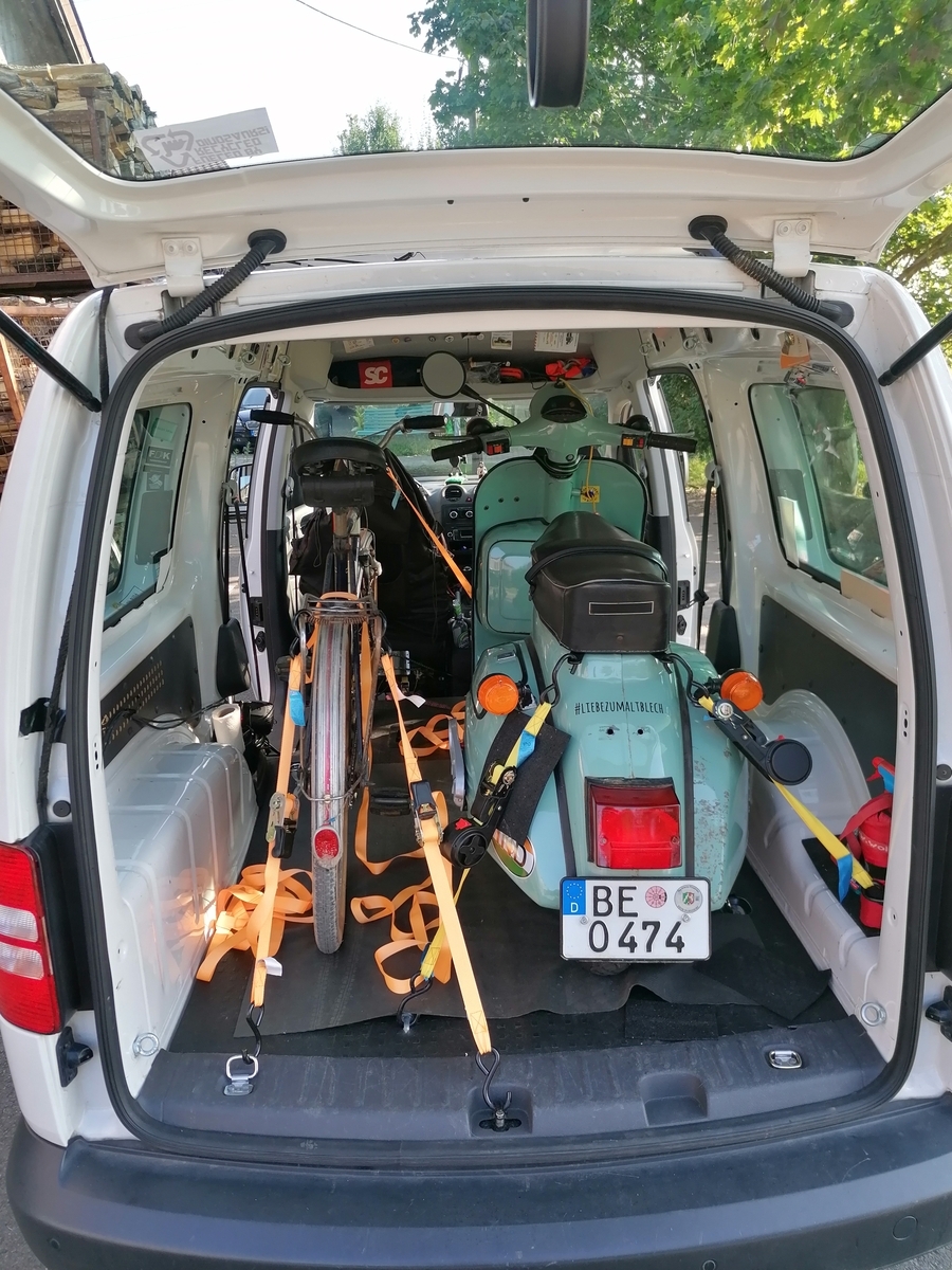 Freu mich über neue Zurpunkte im Caddy für die Bajaj. Fahrrad passt auch noch rein (Hier mein Hofrad)
