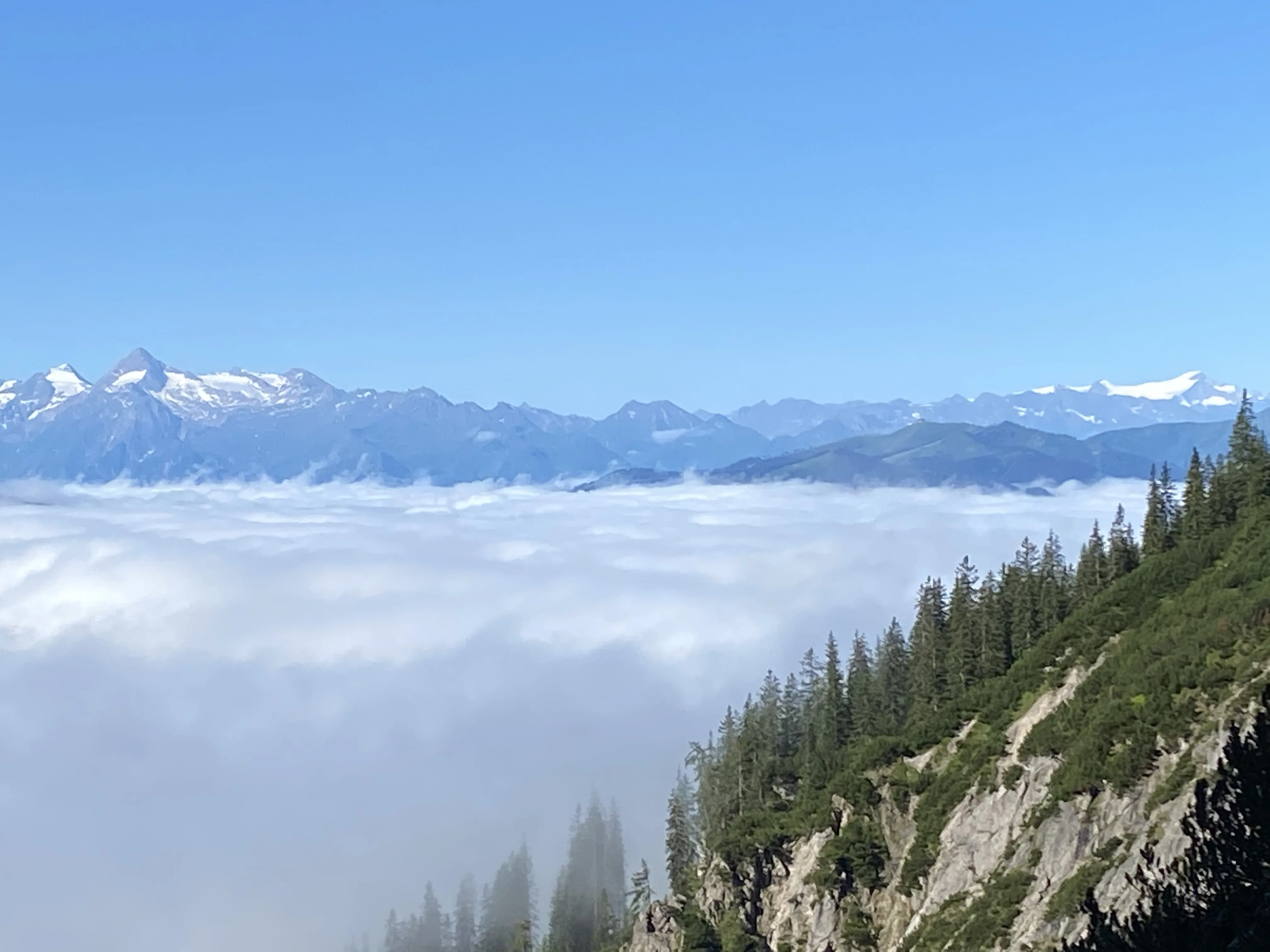 Heute Morgen im Aufstieg zum Riemannhaus im Steinernen Meer lacht mich beim Umdrehen plötzlich der Großvenediger (rechts im Bild) an. Damit hatte ich nicht gerechnet. Den sieht man so selten. Ein richtiger Glücksmoment.