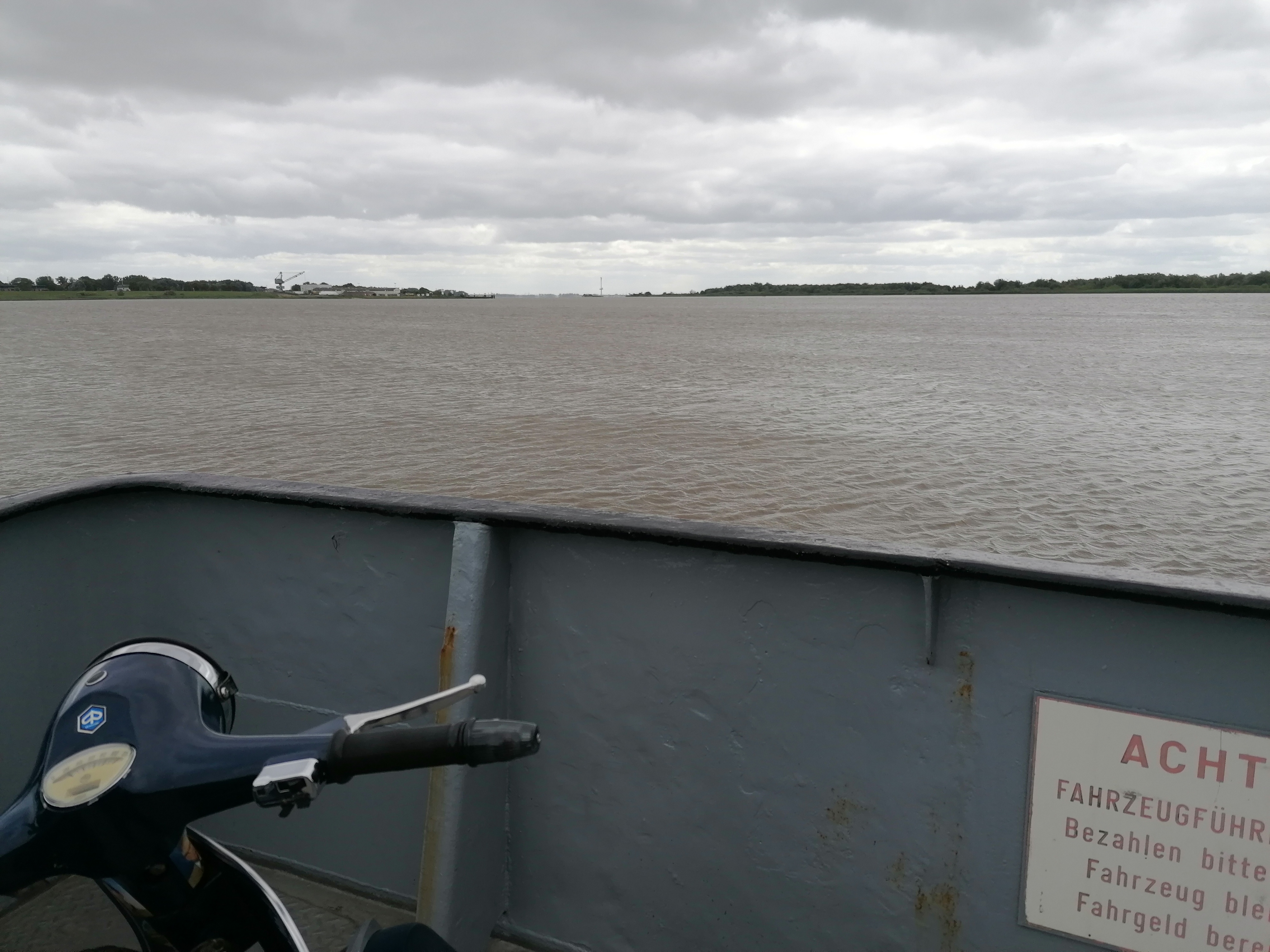 Die Fähre setzt mittlerweile nur noch Personen und historische Fahrzeuge über, normalerweise H-Kennzeichen erforderlich, aber mit Deiner alten Vespa nehmen die Dich bestimmt auch mit.