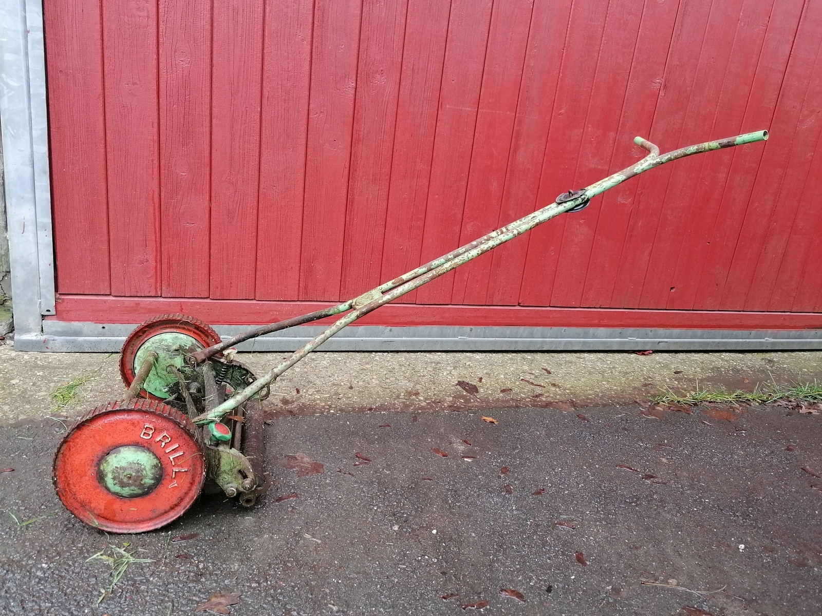 Es ist ein Brill Spindelrasenmäher. Würde auf 50er/60er Jahre tippen. Habe im Internet noch nix zu gefunden