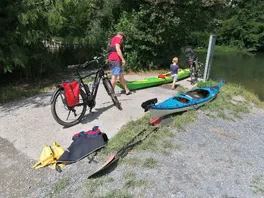 Mit dem Bulli zum Ziel und mit dem Rad zum Start. Nachher die Räder wieder eingesammelt. Die Strömung ist zu stark um den Fluss wieder zurück zu paddeln.