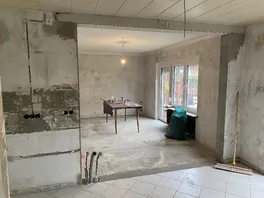 Gestern war der Maler da, Tapeten und Wandfliesen sind raus, der Küchenboden ist grundiert. Frau Bingele will Laminat liegen haben.