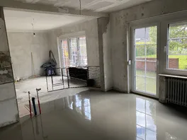 In den Bereich kommt die neue Küche mit der Spüle montiert...