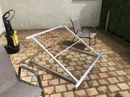 Weiter habe ich, da ich die gekaufte Aufständerung für die Solarabsorber ja habe, Maß nehmen können und eine Erweiterung unter Zuhilfenahme der Fräsmaschine gemacht für weitere 2,2 qm Absorber wegen der größeren Wassermenge.