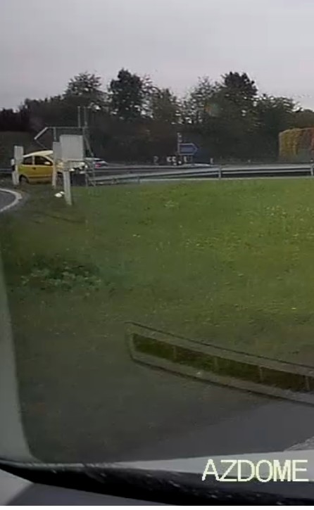 Bin grad auf die A2 drauf gefahren. Da wollte einer mit seinen kleinen gelben Audo abfahren. Und hat dabei verkackt...