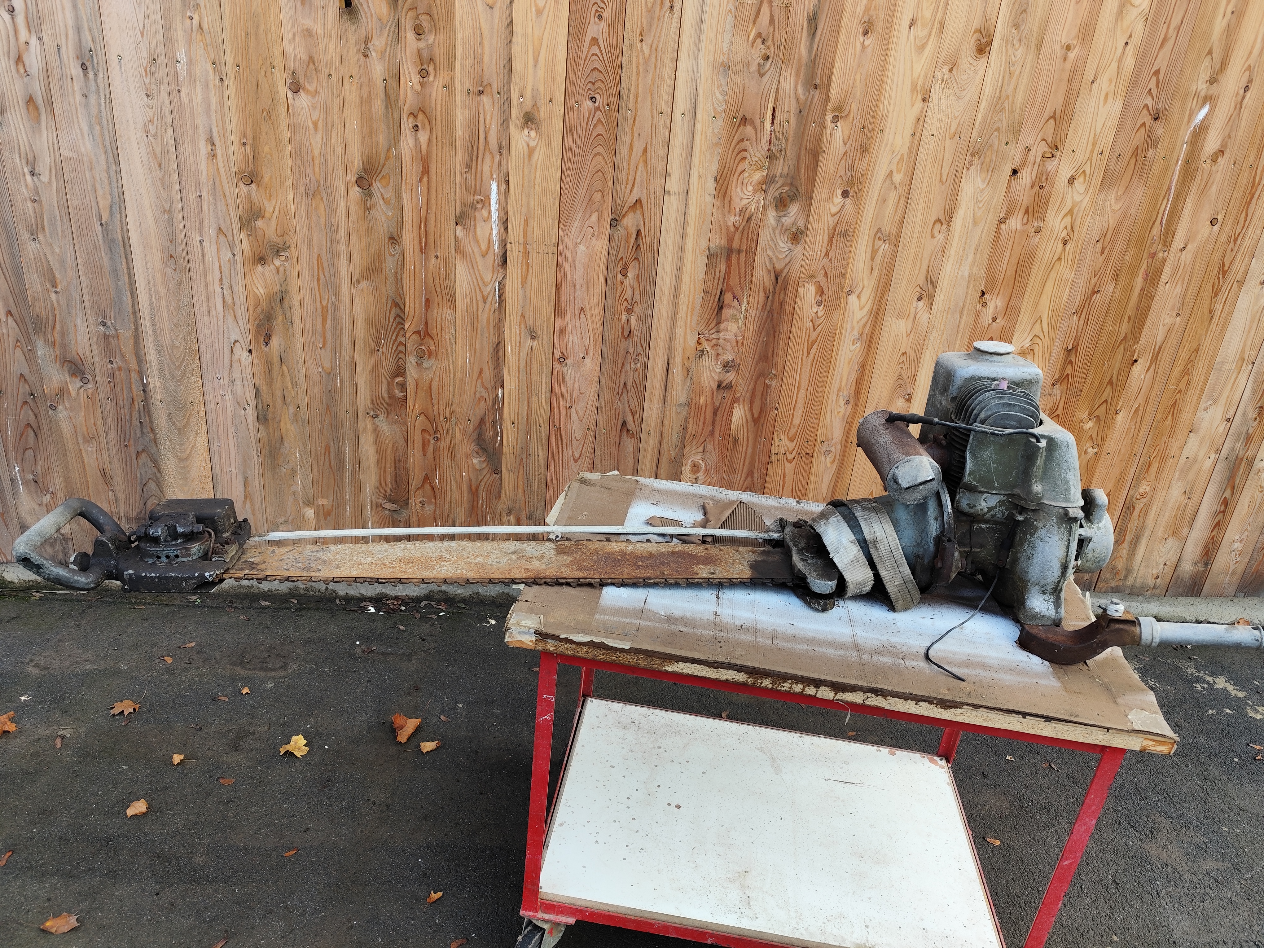 Der Bauer hat schon seit über 30 Jahren ne Dollmar CL Zweimann Kettensäge BJ 1944 anner Wand hängen. Davor hat sein Vatter die lange im Wald benutzt. Ist seit ewigen Jahrzehnten im Familienbesitz. Seit dem ich dort Schraube nerve ich ihn das ich die mal laufen lassen möchte. Jetzt hat er sie mir gegeben zum feddich machen. Erst muss ich noch ne Rundlicht feddich machen die bei mir inner Werkstatt steht dann kommt die Dolmar dran. 247ccm,8PS. Motor dreht sauber frei. Tank ist relativ sauber. Könnte einfach werden. Sie soll nur laufen. Mehr nicht. Kenne die nur von sehen. Habe die noch nie laufen gehört. Hat nen Nasenkolben drin. Das habe ich gesehen. Wiegt stolze 47Kg. Bedienungsanleitung habe ich mir grad schon runtergeladen. Bin schon gespannt wie dien klingt.