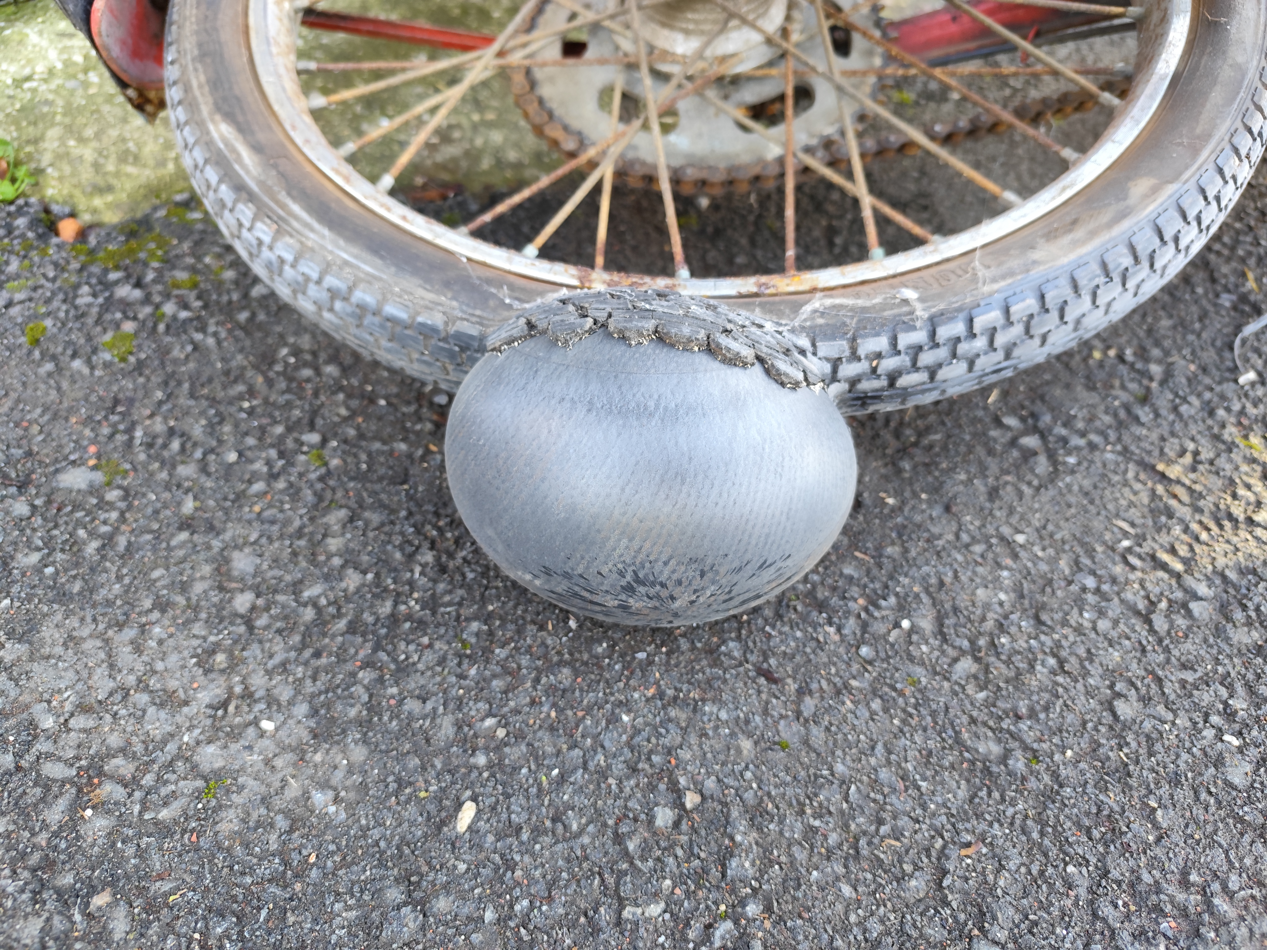 So'n defekt hatte ich auch noch nie gehabt. Aber schön das noch die ersten Reifen von 1972 drauf sind. Und Starflite gelabelt. Zündfunke gibt's genausowenig wie Papiere oder nen funktionsfähigen Gasgriff. Motor dreht.Letzte Kennzeichen von 1982.