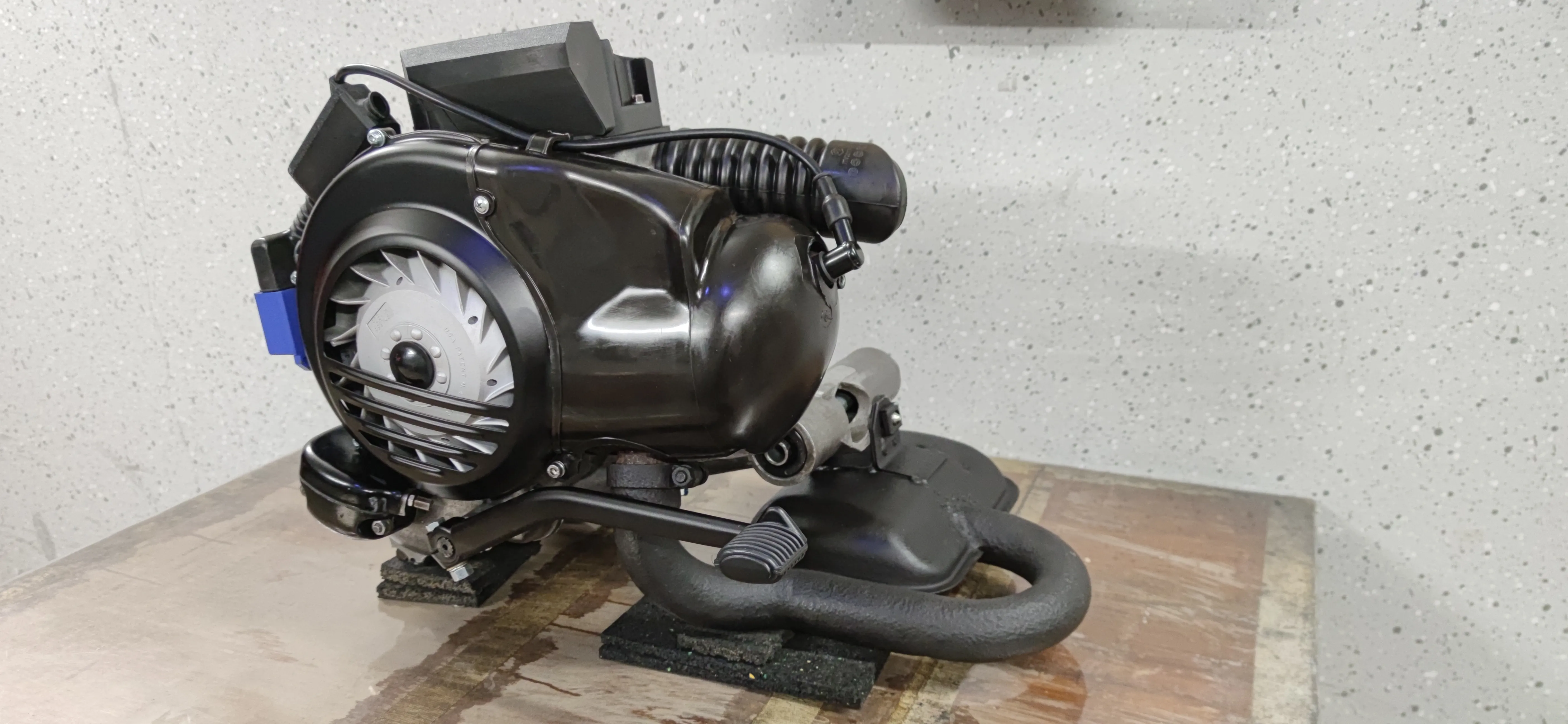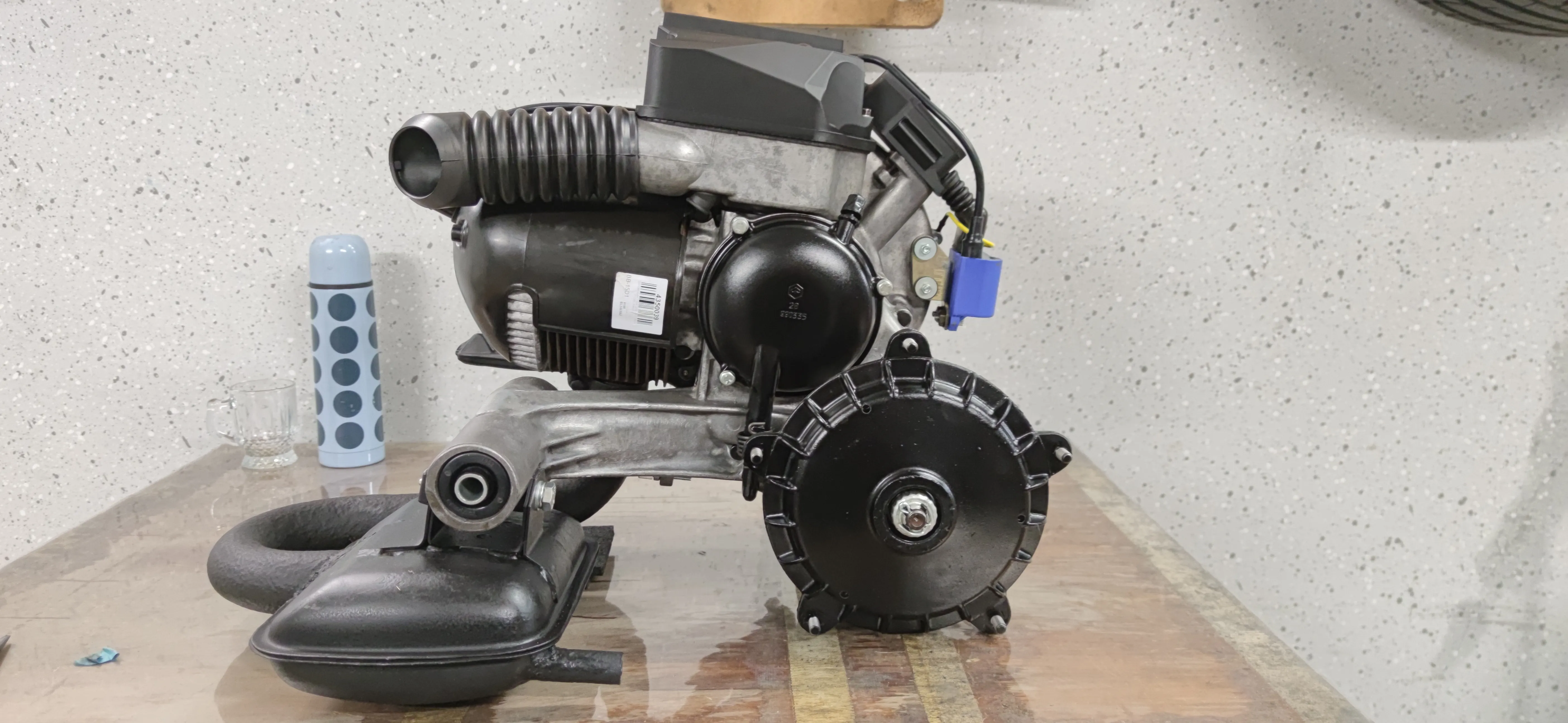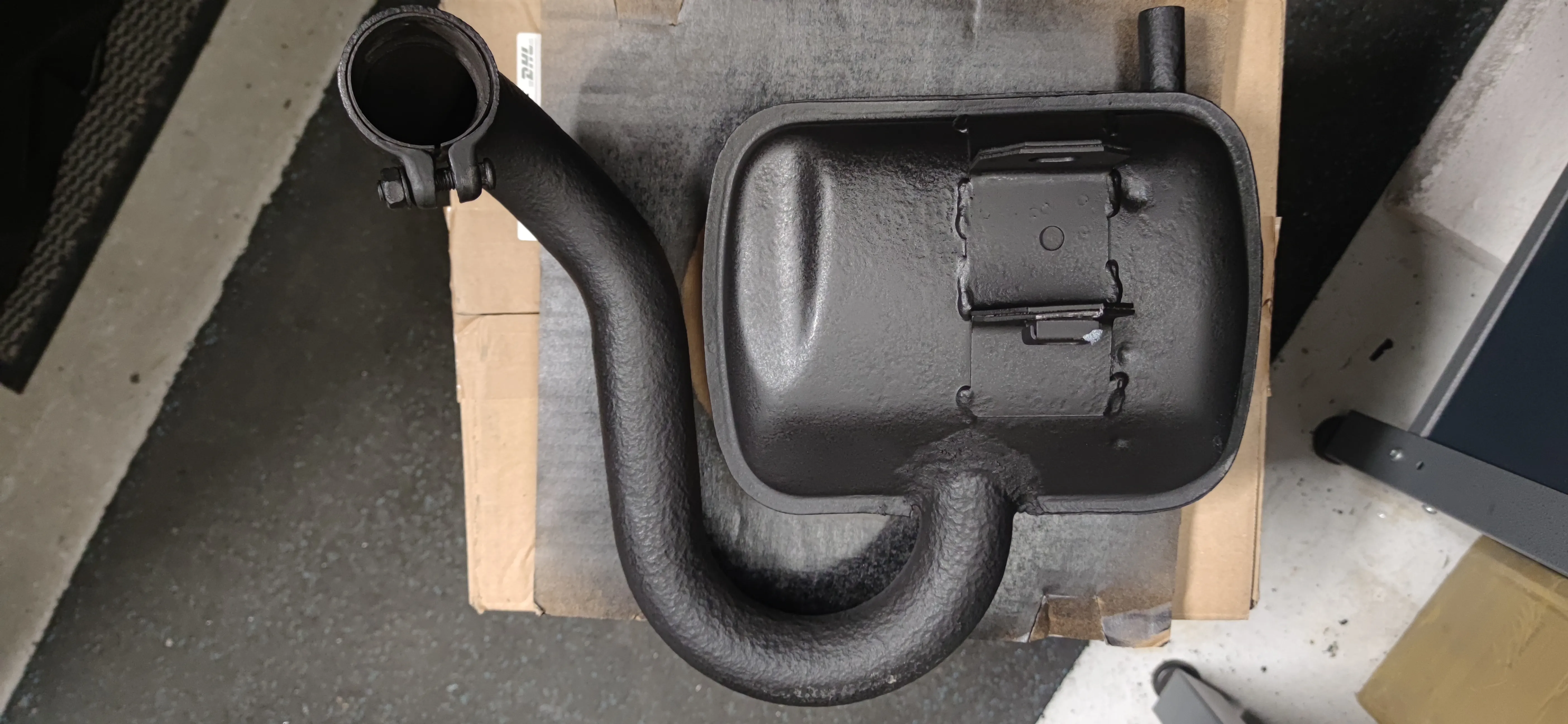Habe den frisch revidiert und einen original Auspuff dazu geholt. Der war rostig, aber dicht. Habe den auf der Arbeit gestrahlt und mit 800°C Lack behandelt. Schaut wieder passabel aus wie ich finde.