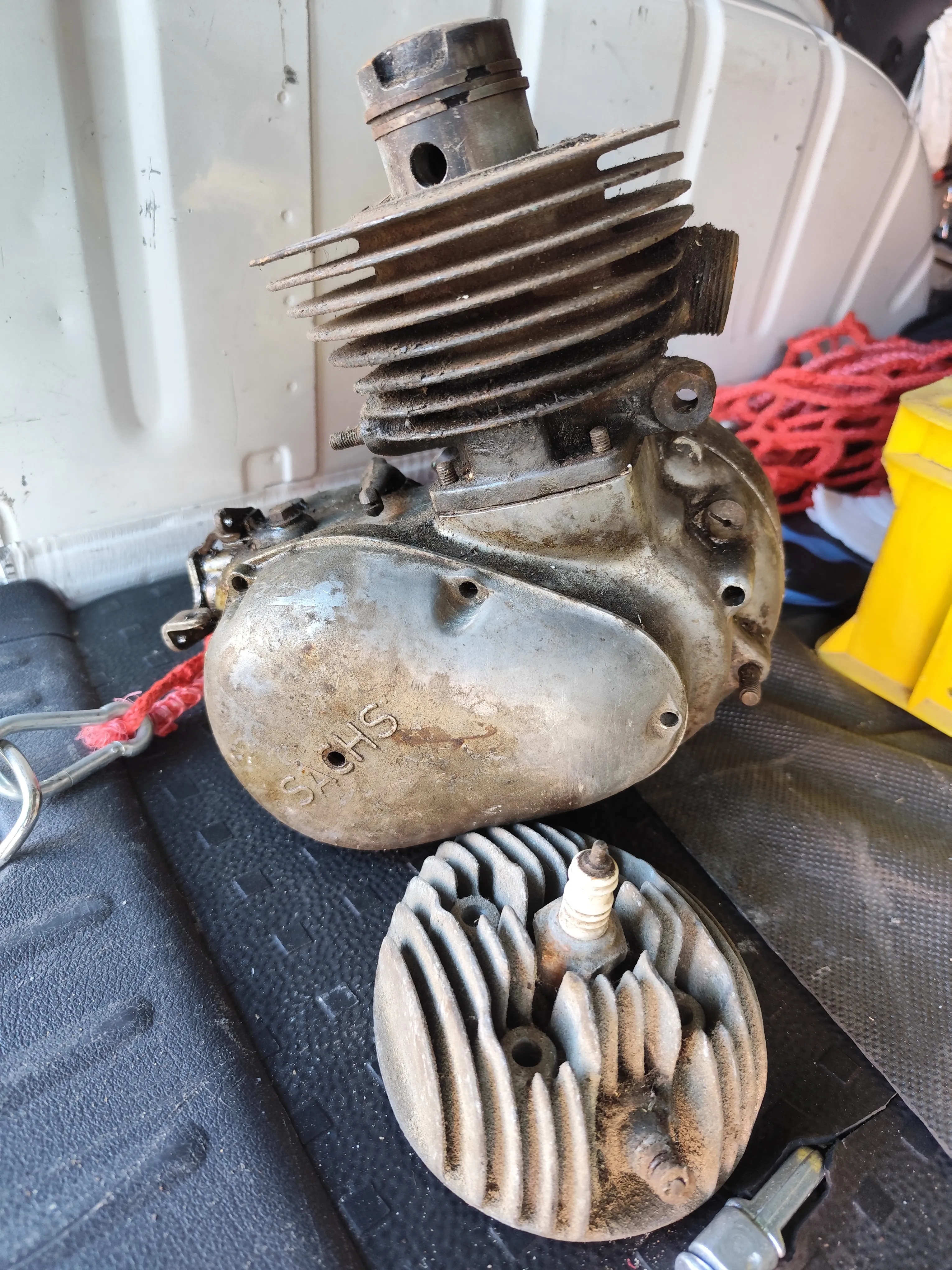 Ich habe nen kompletten Rahmen/Blechsatz von ner Rixe liegen. Muss mal schauen was das genau für eine ist. Vielleicht passt der Motor da rein...