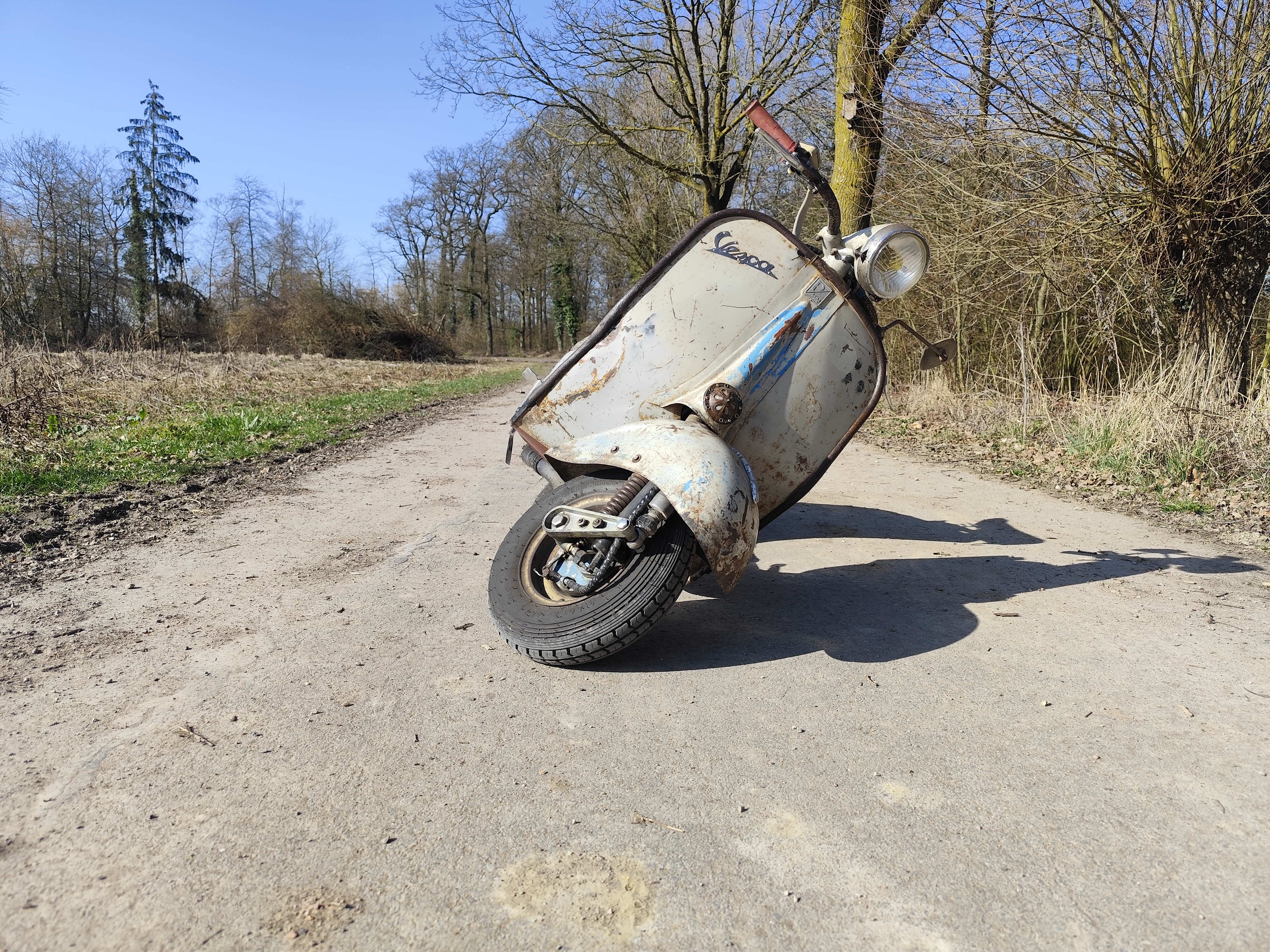 Das selber aufgemalte grüne Kennzeichen ist nicht mehr zu lesen. Was gut ist. Nächste Woche mal beim Schildermann fragen ob er mir das prägen kann. Nur prägen. Die Schrift male ich dann selber an. Ist perfekt für die Acma.