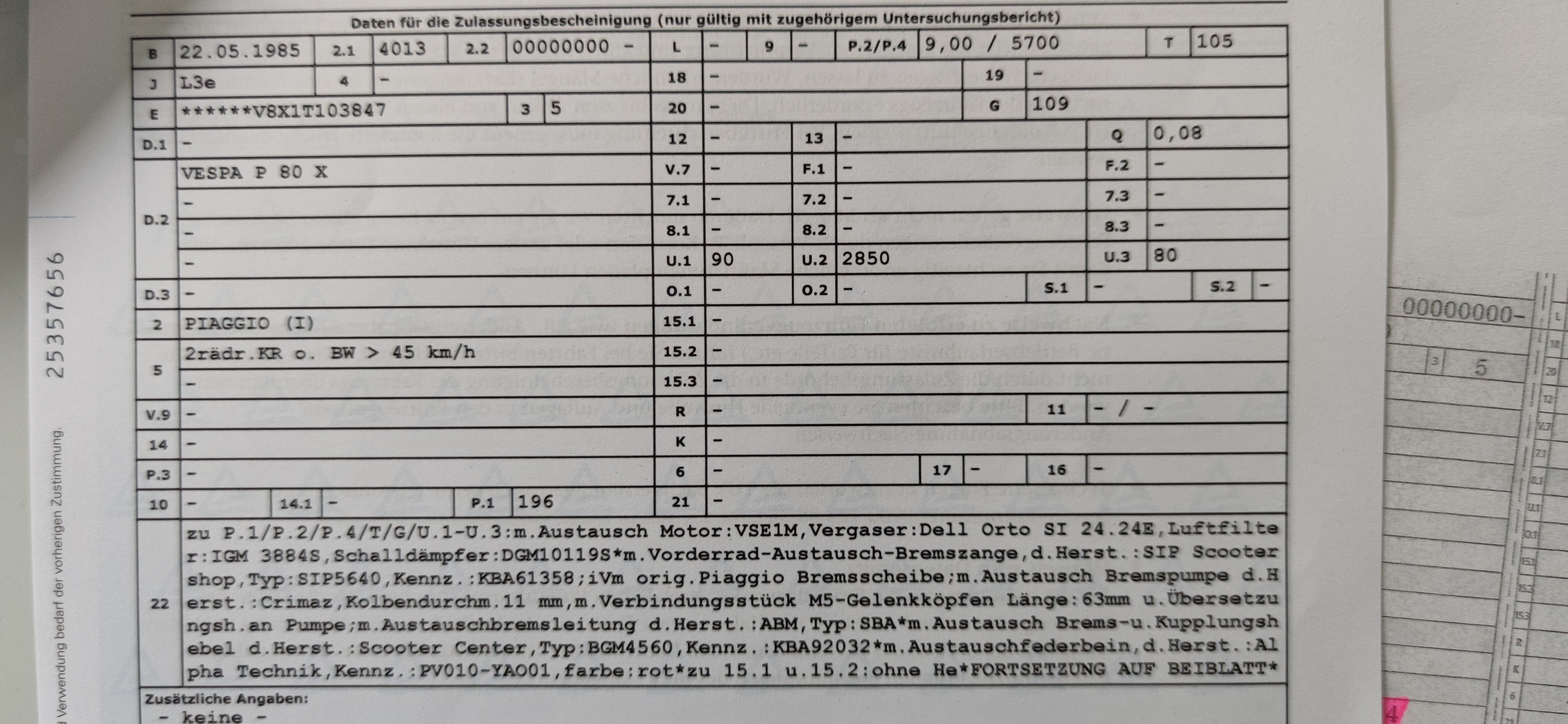 Ich freue mich total auf meine Eintragungen meines 200er Motors und des Scheibenbremsen Umbaus, samt Crimaz Bremspumpe.
