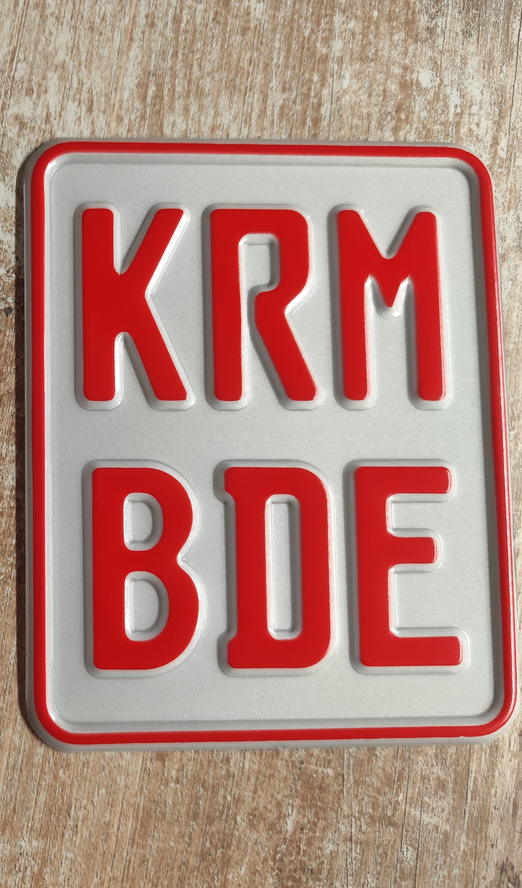 Bischen rumgegoogelt und dann bei den Wettbewerbskennzeichen gelandet. Sind 7/9mm größer wie ein Fuffi Kennzeichen. Gibt's allerdings nicht in bunt. Aber das kommt noch. Die Buchstaben klebe ich ab und dann lass gehen :D