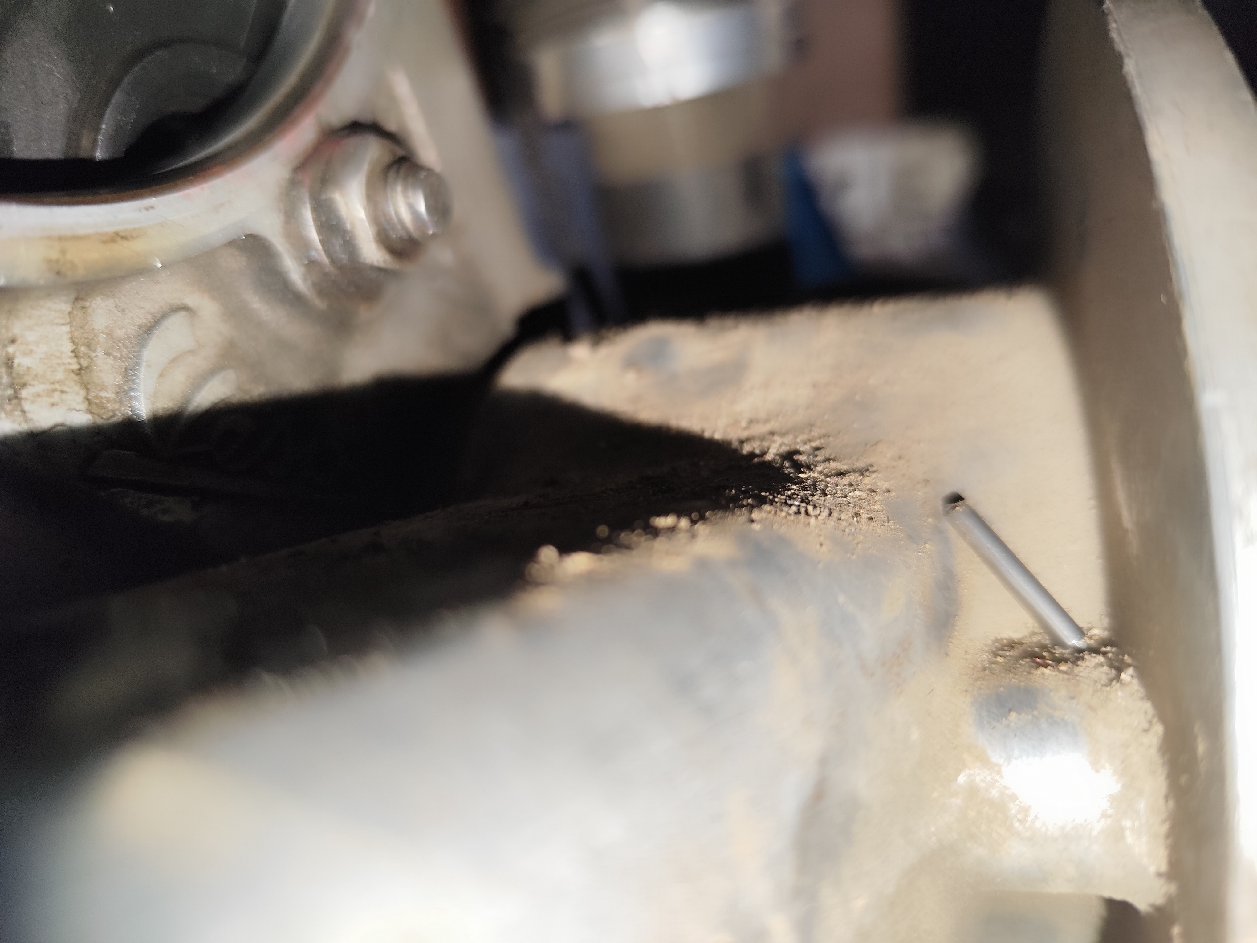 Dann mal das Handy genommen und gefreut. Die Nadel war auch da. Glück gehabt. Alles wieder zusammen gebaut. Diesmal mit Loctide Hochfest zur Sicherheit.