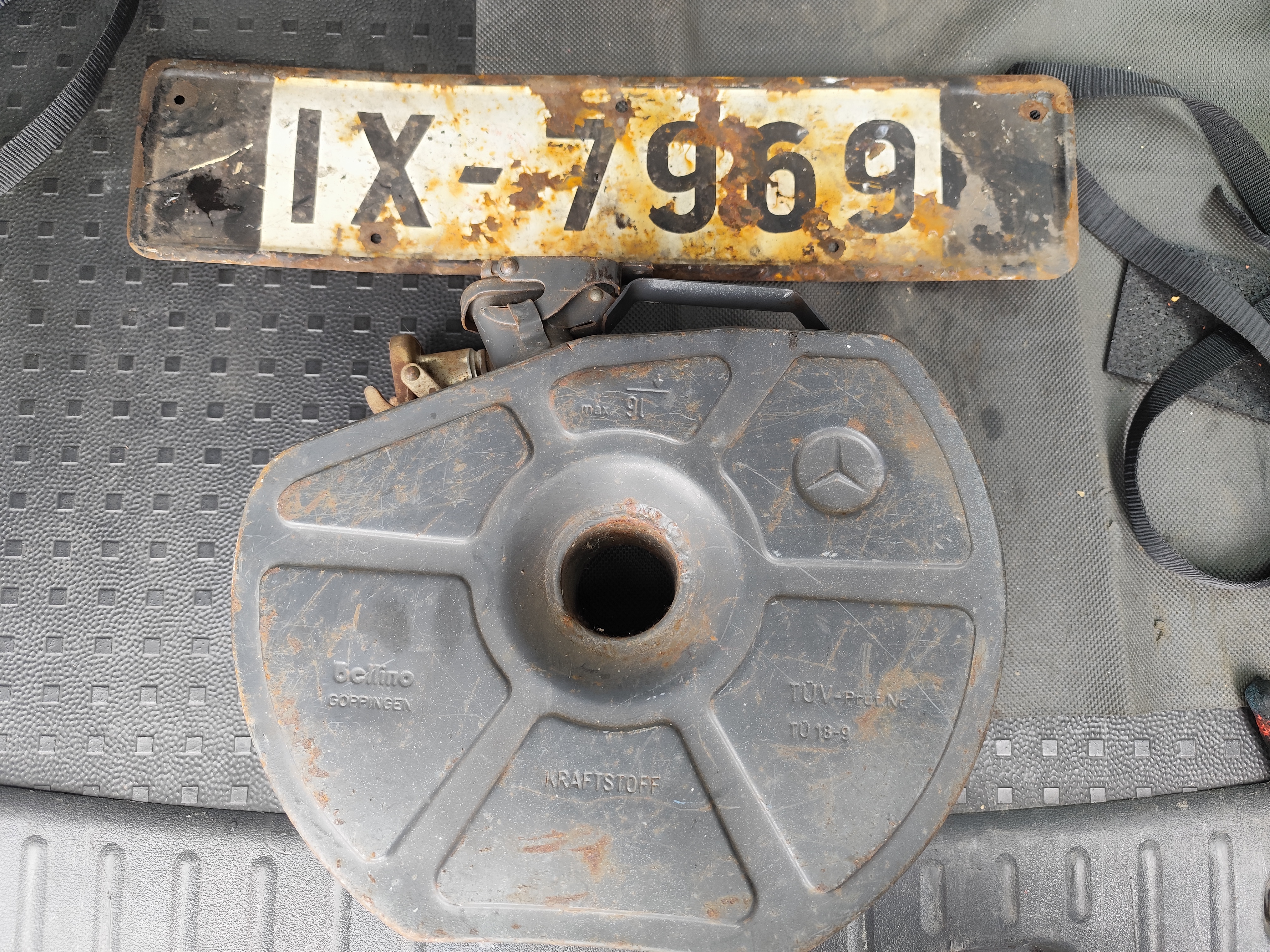 Und geangelt habe ich auch wieder. Ein 9L Mercedes Reserverad Kanister. Die sind selten. Normal ist 7L.