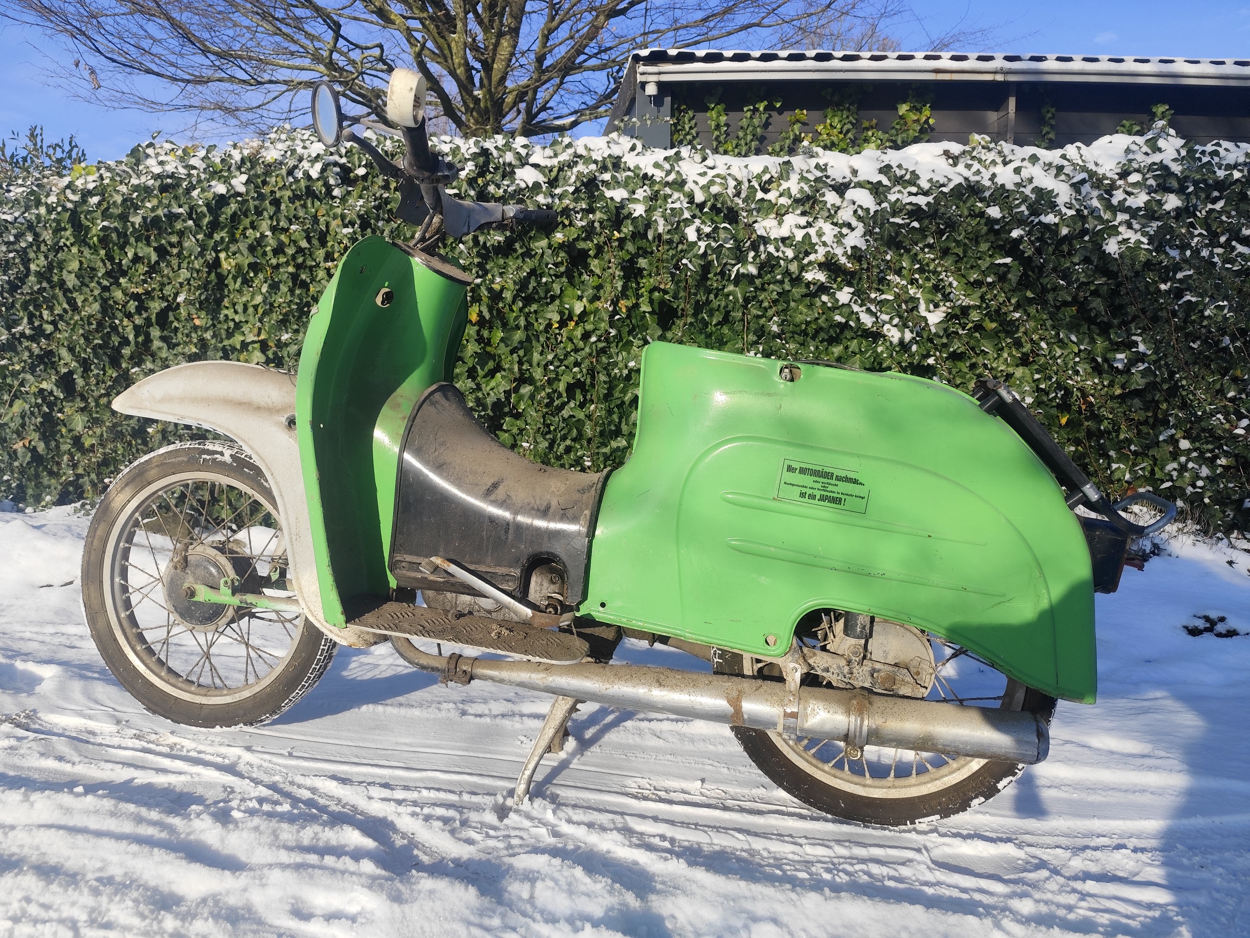 Als erstes Fahrzeug für die Tochter geht das voll ok, die Gestaltung ist allein auf Ihrem Haufen gewachsen und Papa ist stolz drauf.Das war auch ne Weile therapeutisches Schrauben für uns aufgrund eines familiären Einschlags, inzwischen aber wieder alles okay.