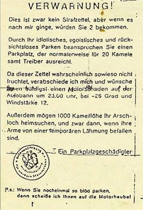 Den angehängten Strafzettel, den mir ein Freund zugeschickt hat