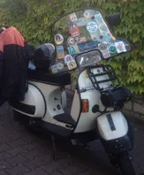 olack, deutsches modell, bj.88, tourenfahrzeug eines rentners, der sich damit europa angeschaut hat. eingetragener 172er malossi und ufo-grimeca, dazu porno wo es nur geht: scheibe mit aufklebern aus ganz europa, radio im handschuhfach und vor allem ein topcase, das mit bremslicht versehen ist :d (weiß jemand, ob dieses "gepäcknetz" am handschuhfachschloß original-zubehör ist?) dazu 3 kisten zubehör, wir haben jetzt züge bis ans ende aller zeiten glaub ich