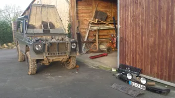 Heute morgen noch mit den Benz holz aus den wald geholt und anschließend schonmal soweit ich konnte alles losgeschraubt damit ich mirgen die Karosserie vom rahmen nehmen kann. Natürlich wurde bei ca 14 grad und sonne vor der werkstatt geschraubt.