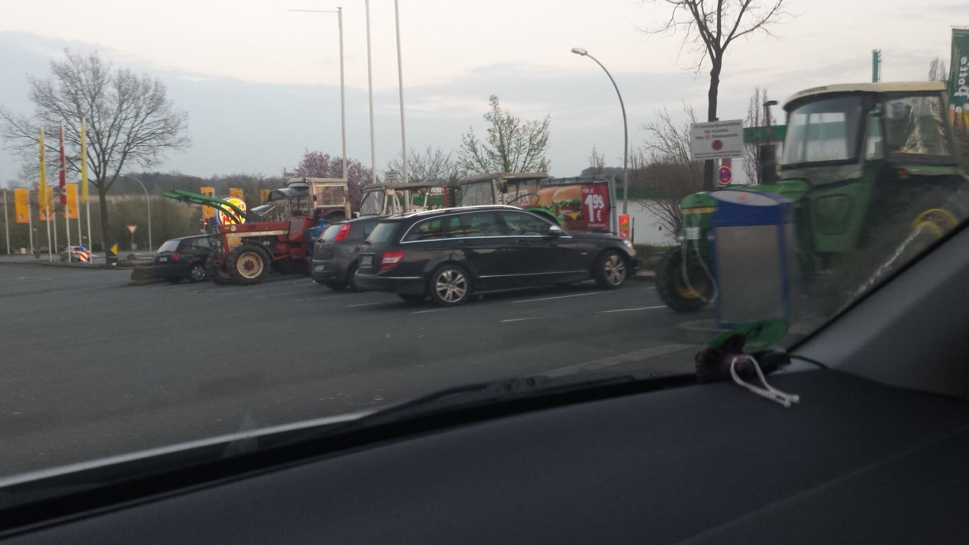Die 2 kleinen schlepper verschwinden hintwr den kombi.