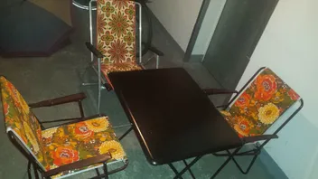 Die beiden gleichen stühle und der tisch aus den anfang 80er jahren.
