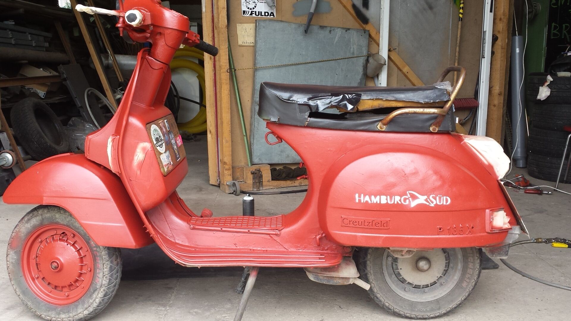 Ein paar sachen werden noch schwarz gelackt. Bei der vespa ist es mir auch noch irgendwie egal wie sie gelackt wird. Irgendwann allerdings wird auch die mal hübsch gemacht.aber hübsch hat jeder... Verdient hätte sie es sich ja mal. Aber solange bleibts die ranzmöhre. Vielleicht schleife ich auch mal alles durch. Sind ja jetzt einige farbschichten drauf...