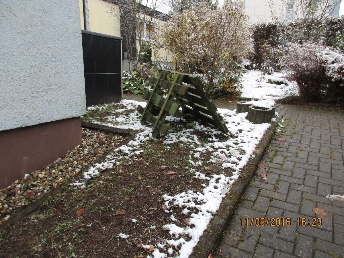 Habe vor zwei / drei Jahren einen Flieder vors Haus gesetzt. Der sah nach den Wintern immer so kümmerlich aus, da kamen keine Blüten und der Wuchs war echt kümmerlich. Jetzt habe ich aus einer alten Euro-Palette einen Wetterschutz gezaubert. Jetzt gehe ich einfach mal davon aus, dass der Flieder diesen Winter besser übersteht und dass da nächstes Jahr mal was blüht