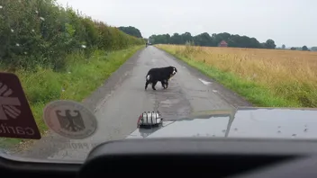 Da fähste quer durchs land und was sitzt auf der straße und ist schwer unbeeindruckt?