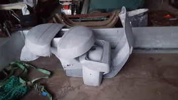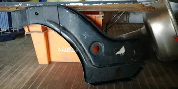 Beinschild ok, Trittblech machen wir neu. Rest ok, kleiner Krebs am Heck.