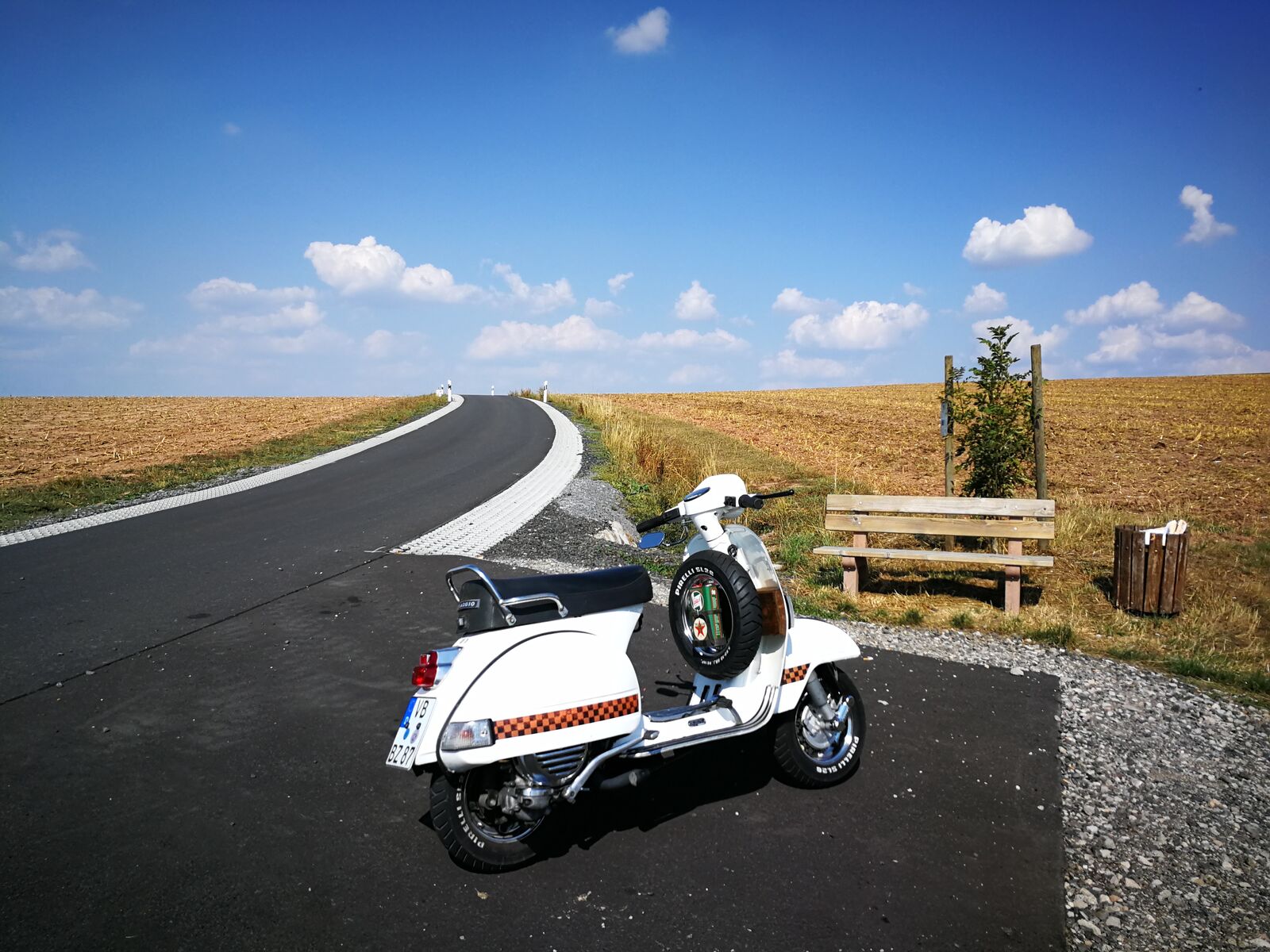 Eben gerade die erste größere Tour mit der Vespa gefahren. Vom Vogelsberg aus in die Rhön, auf Hessens höchsten "Berg", bzw. Hügel,... die Wasserkuppe.