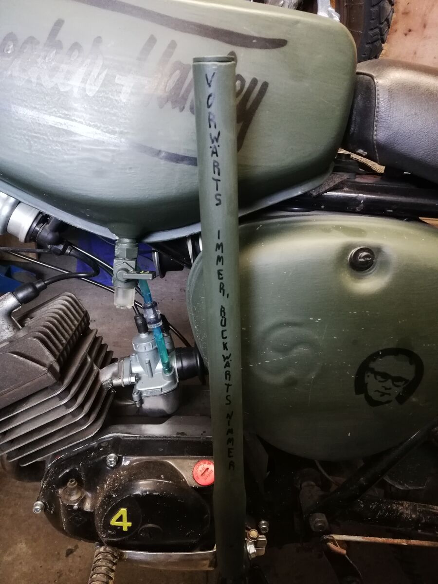 Mein frisch revidierter Motor ist heute nach dem 3. Kick direkt angesprungen und lief schön rund. Sobald das Salz von der Straße ist geht's auf die erste Probe und Einstellungsfahrt. ![]()