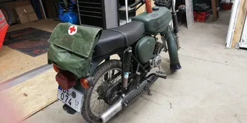 Seit heute darf ich ja die Honecker Harley fahren. Läuft ganz gut der Trümmer. Aber was mir fehlt ist der Knieschutz. Hose und Schuhe sind dreckig weil alles so auf die Füße klatscht bei den kack Wetter. Werde mal nach nen zerschossenen Knieblech ausschau halten. Und das fehlende Handschuhfach merkt man auch. Wohin mit Gemischöl,Mütze, Werkzeug....