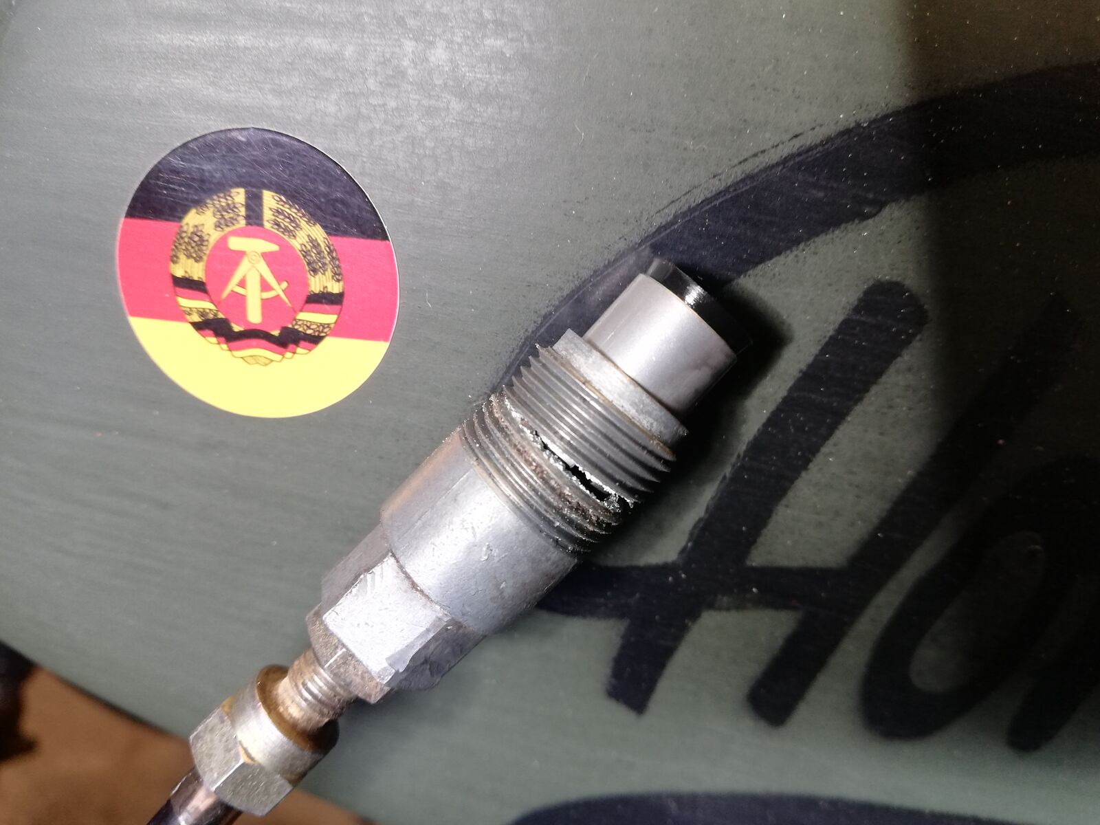 Dachte erst an Dreck im Gaser. Anreißen war nicht mehr. Nur anschieben ging. Also mal den neuen Gaser nachschauen dachte ich mir. Der Choke war das erste was ich ausgebaut habe. Siehe da,gebrochen .