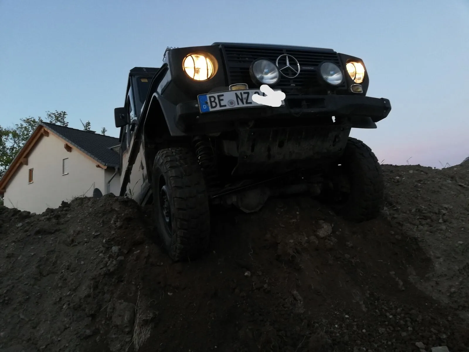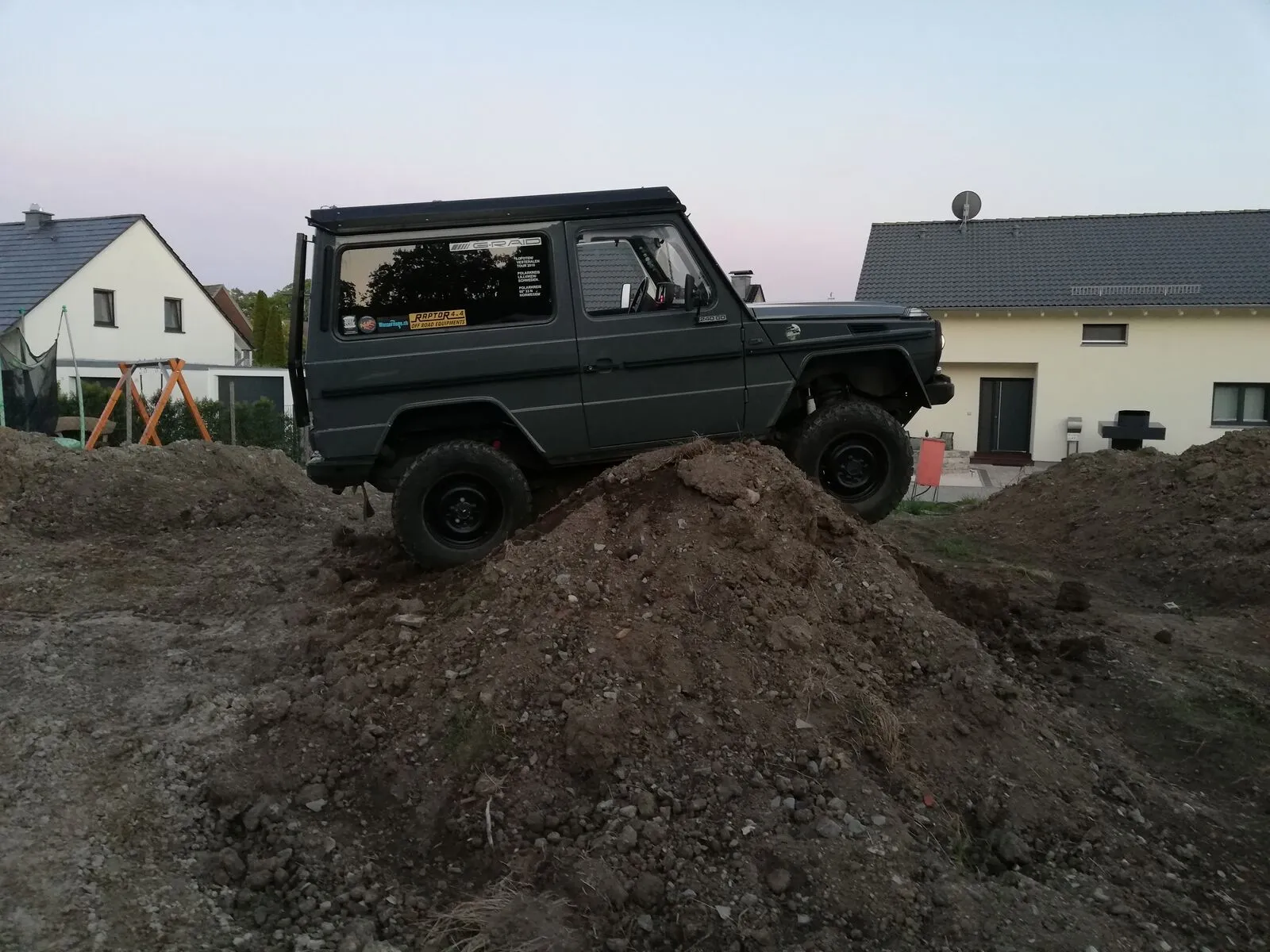 Heute bei Kumpel am Neubau geholfen. Ich darf mit den Benz im "Garten" parken. Feierabend. Nach Hause fahren. Aber über den Spitzen Erdhaufen. Leider mit etwas zu wenig Schwung. Ne Std buddeln zu zweit dann war er wieder frei. Und dann mußte zur Strafe das der Fahrer nicht genug Gas gegeben hat beim ersten mal der Benz über den Haufen drüber. Da war's dann kein Problem mehr. Hatten ja den Rahmen frei gebuddelt. Hat aber Spaß gemacht
