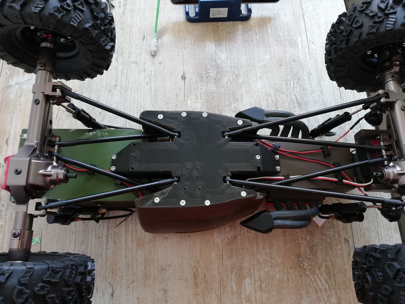 Habe den Kabelsalat am Rat Rod Crawler mal etwas sortiert. Fehlen leider immer noch die Antriebswellen damit ich mit fahren kann