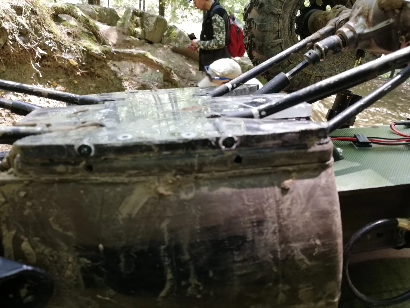 Bis auf ein verbogenen Link ist alles gut gegangen. Der landy ist ca 10m tief ,teils über derbe Steine gefallen, aber unbeschadet unten angekommen. Glück gehabt