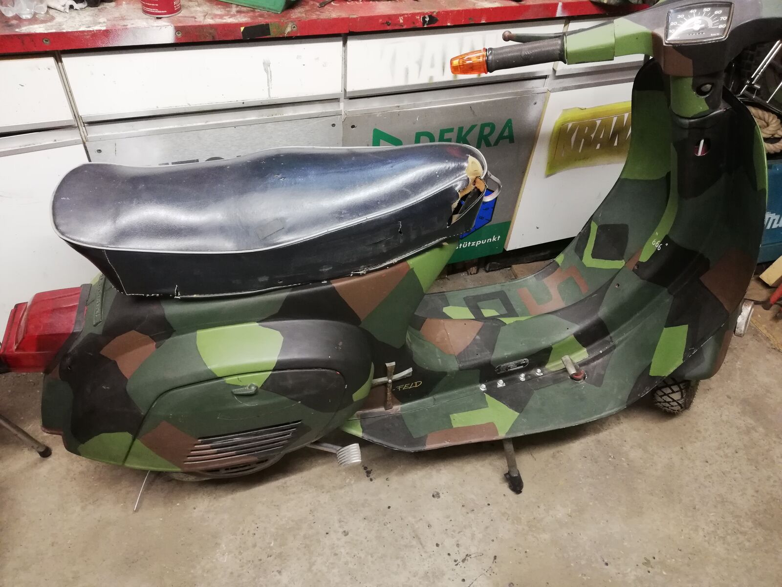 Der Sitzbezug aus schwedischer Zeltplane kommt noch. Die die ich dafür eigentlich gekauft hatte habe ich als kleines Tarp für'n Benz in Benutzung. Muß noch ne neue bestellen