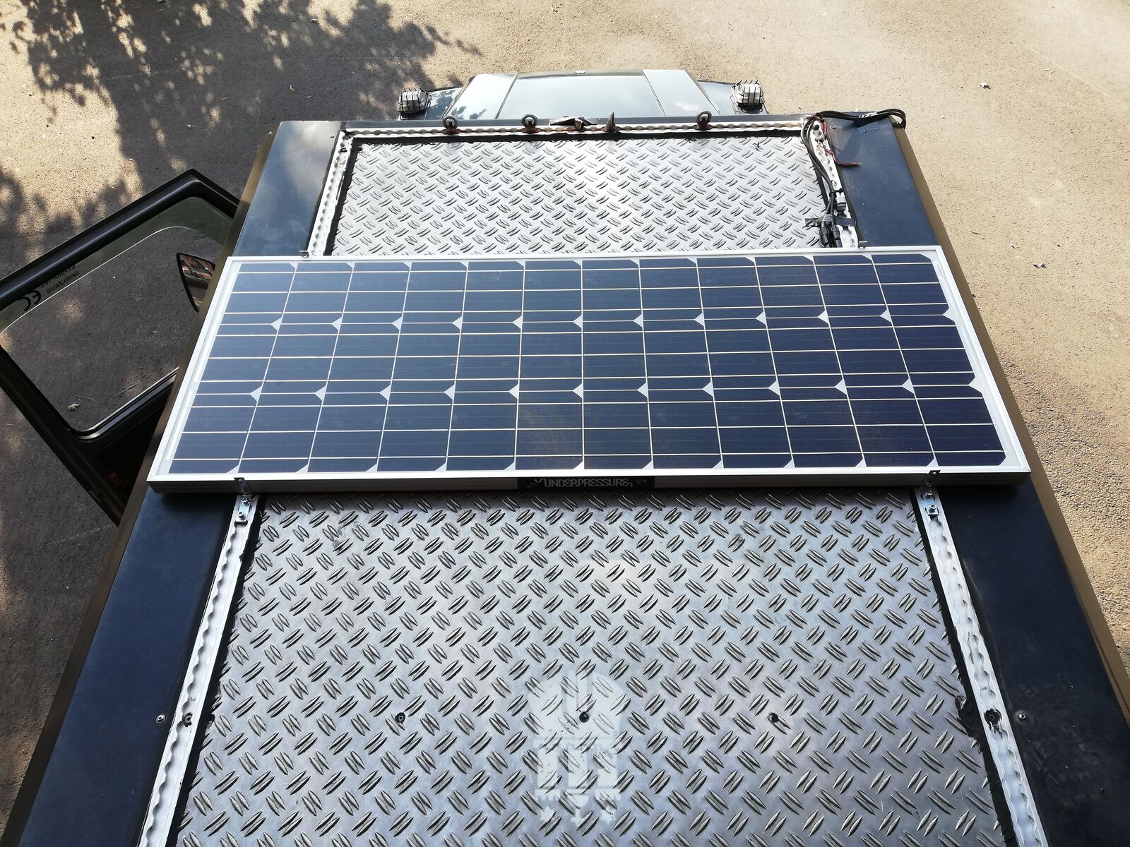 Und das Solarpanel aufem Benz geschraubt. Kabel werden noch ordentlich verlegt.