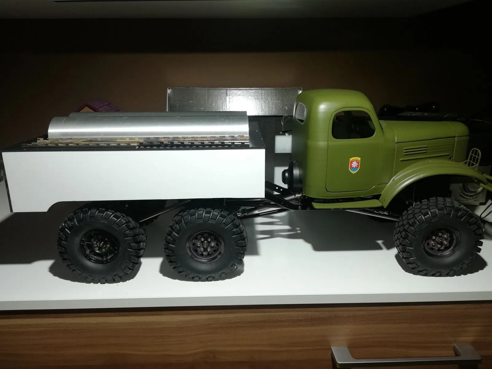 Die RC ZILs die ich so bis jetzt gesehen habe haben Feuergefährlich ,Wasser oder sowas aufem Tank stehen.