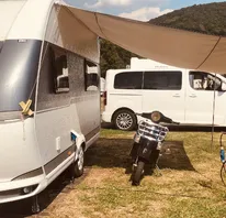 Mit der Fuffi zum Campen gefahren, Sie hat dort ihr eigenes Vespa Port ...
