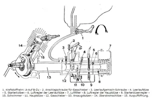 Drehen an Schraube 2 bewirkt also, dass sich die Position des Gasschiebers im Leerlauf ändert.