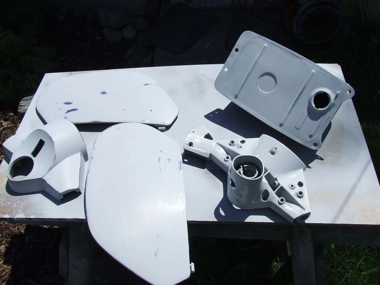 Wiso hast du die Stellen an der die Hauptständerschrauben durch den Rahmen gesteckt werden gespachtelt. Das platzt dir doch beim ersten anziehen der Schrauben alles ab. Der Rest auf dem Trittbrett beim ersten Aufbocken oder wenn man beim Antreten gerne mal aufs Trittbrettabrutscht und es verbiegt.