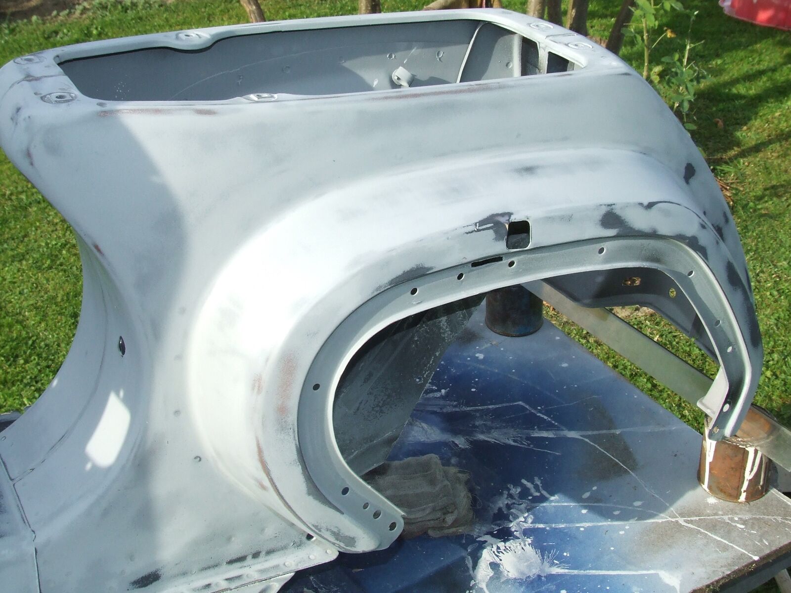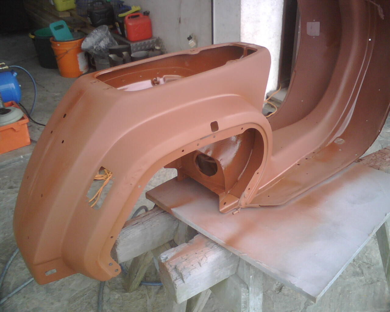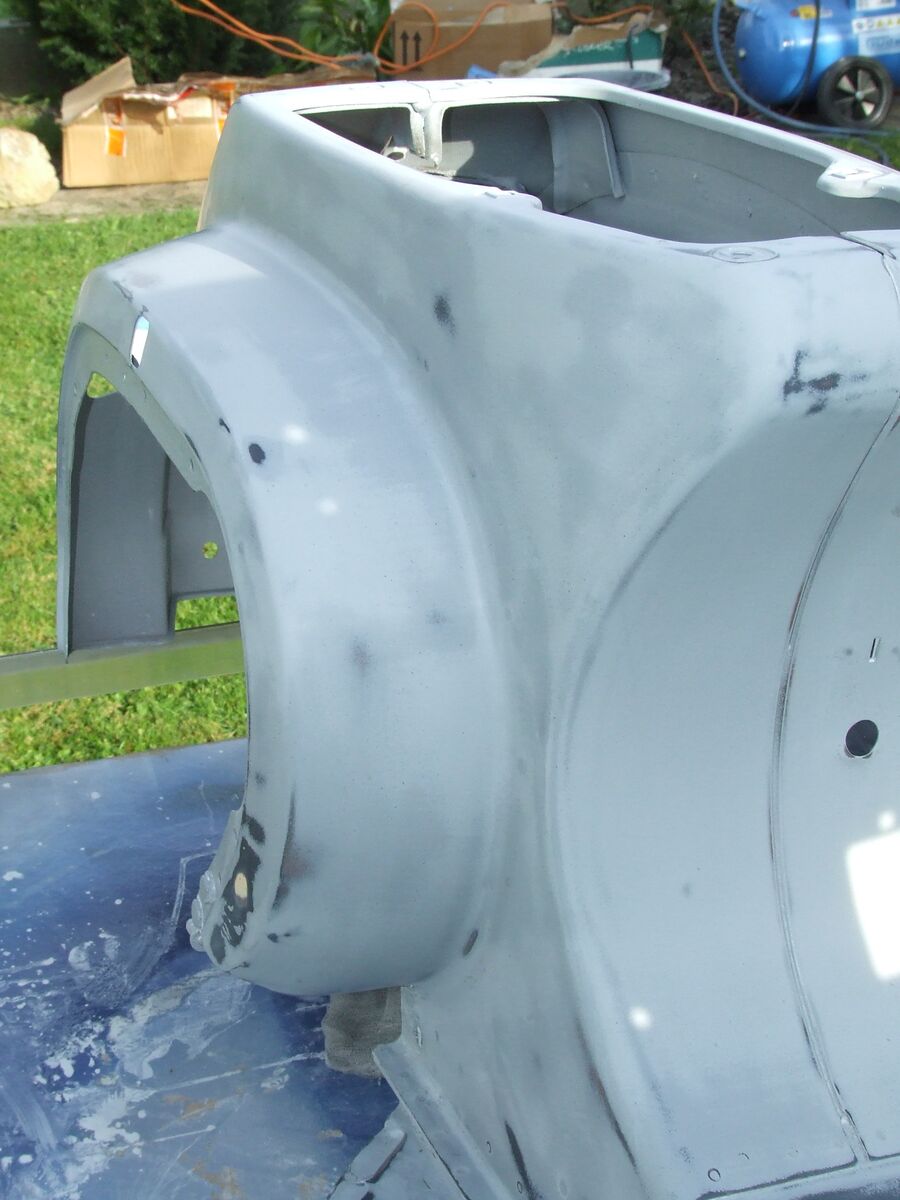 das die kritischen stellen mit Brunox Epoxy danach mit 1K Washprimer rotbraun , dann noch mit 1k grundierfüller express (hier hauptsächlich die trittblech unterseite und die innenräume ) aussen mit 2K Grundierfüller (das schwarze Zeug)