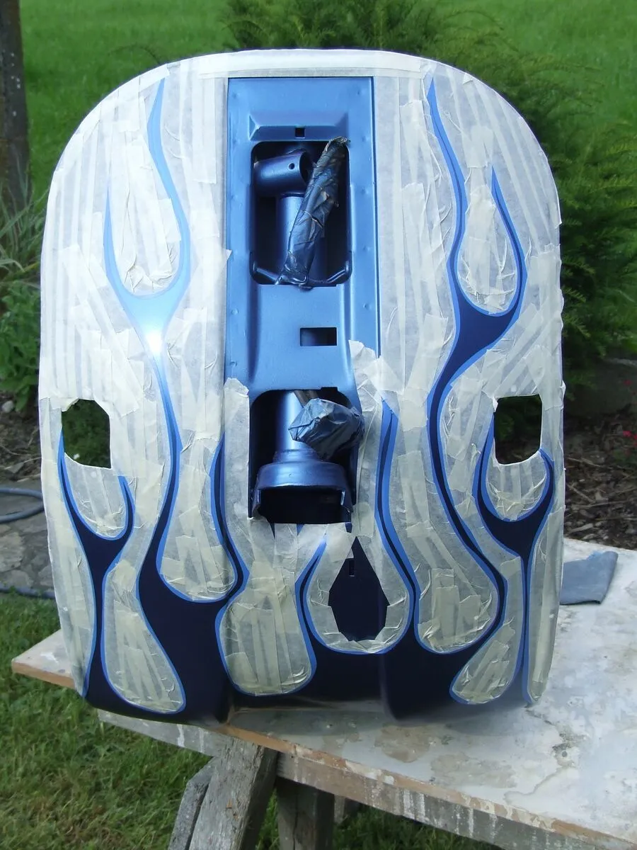 richtig sollen Ghostflames werden ,die üblichen Flames wollte ich nicht ,leider hab ich vorne am beinschild etwas zu dick aufgetragen soll auf den Backen wesentlich dezenter werden