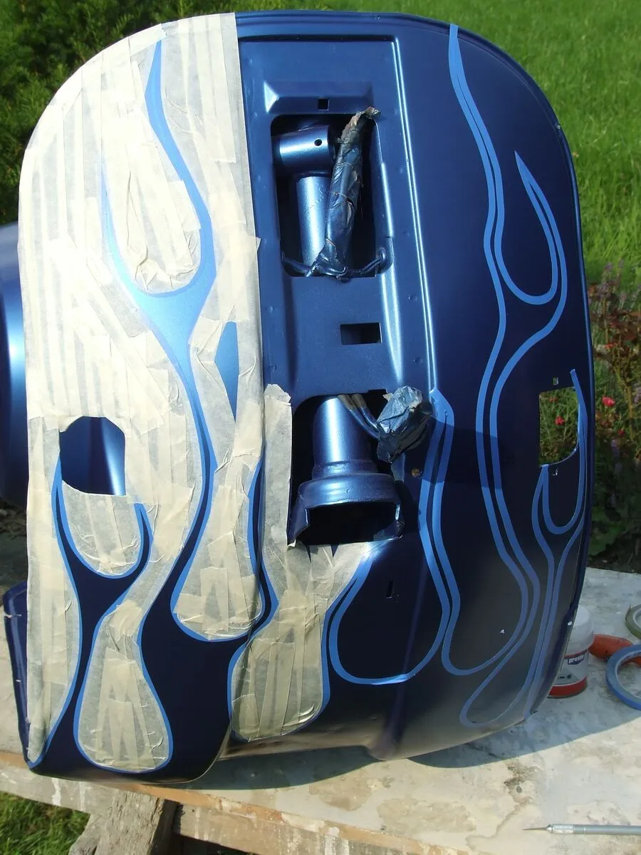 • richtig sollen Ghostflames werden ,die üblichen Flames wollte ich nicht ,leider hab ich vorne am beinschild etwas zu dick aufgetragen soll auf den Backen wesentlich dezenter werden