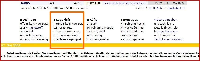 das lager ist ein 6303.C3 ist das denn richtig?? wofür steht das C3 denn vorher war ein lager drin das nich C3 hieß. weiss grad nicht wie aber nich C3 evtl. C4?!? aber wenn das C3 für die härte oderso steht ist es ja auch nicht wichtig