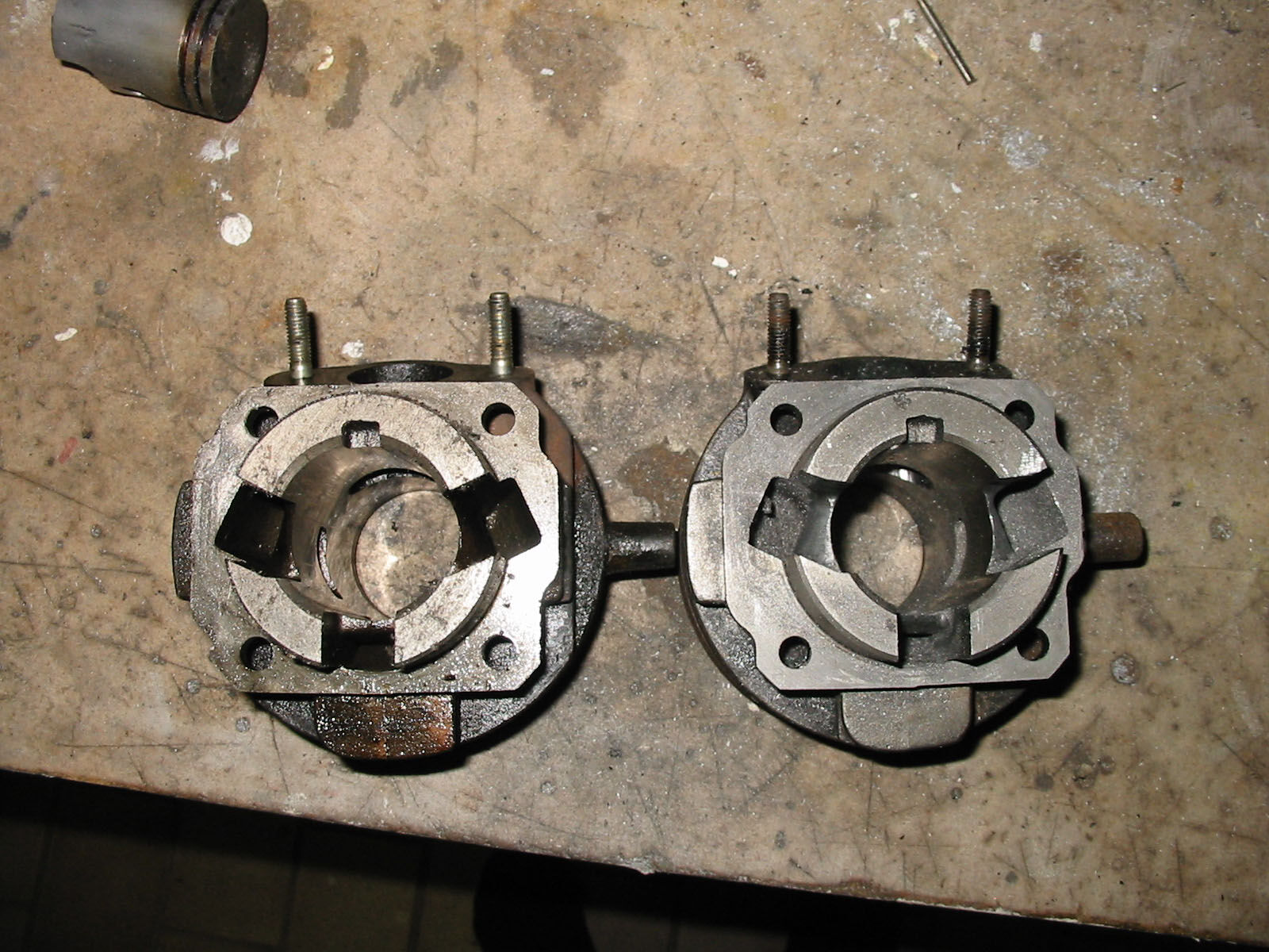 Aber ein bissi extra Leistung wollte ich schon noch und habe deshalb die Überströmer angepasst, sowie Kolbenfenster vergrößert, Auslass hochgezogen und verbreitert sowie den Kopf um ca. 0,6 mm geplant.